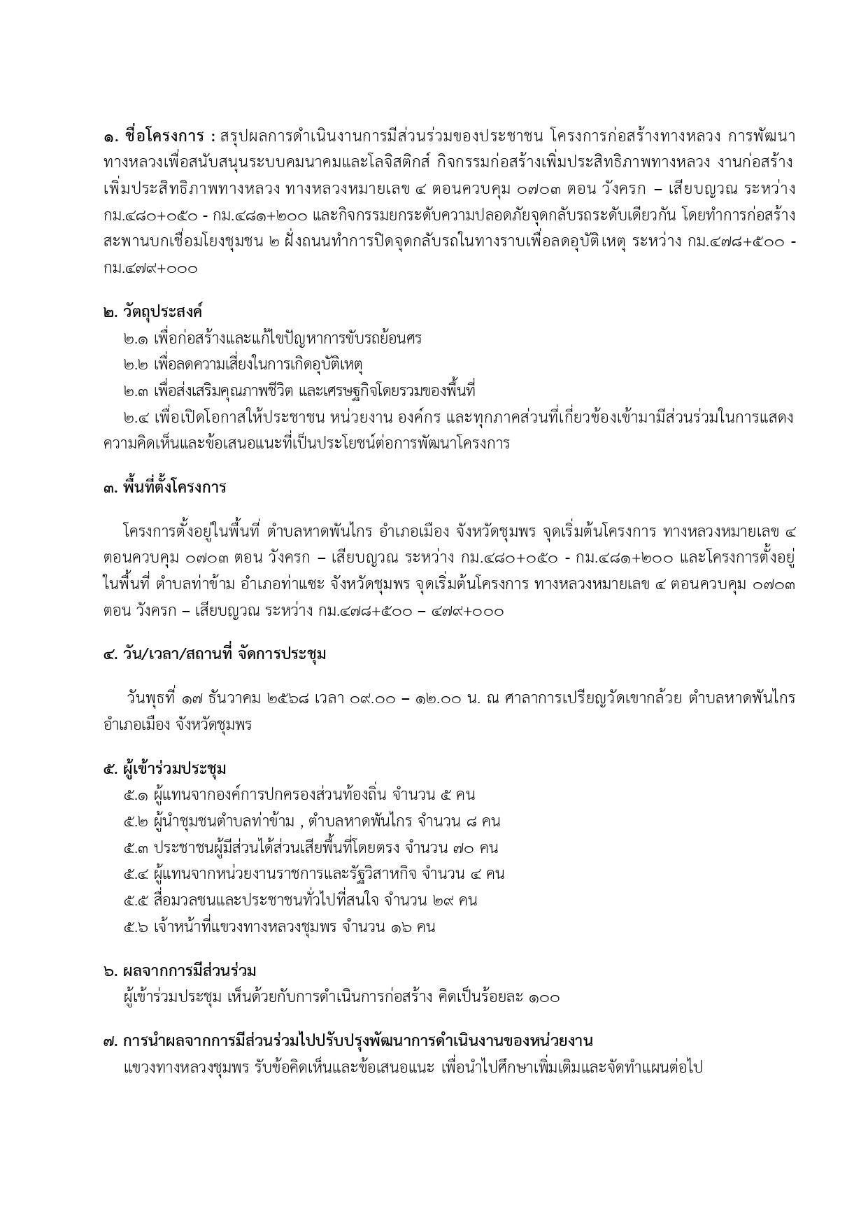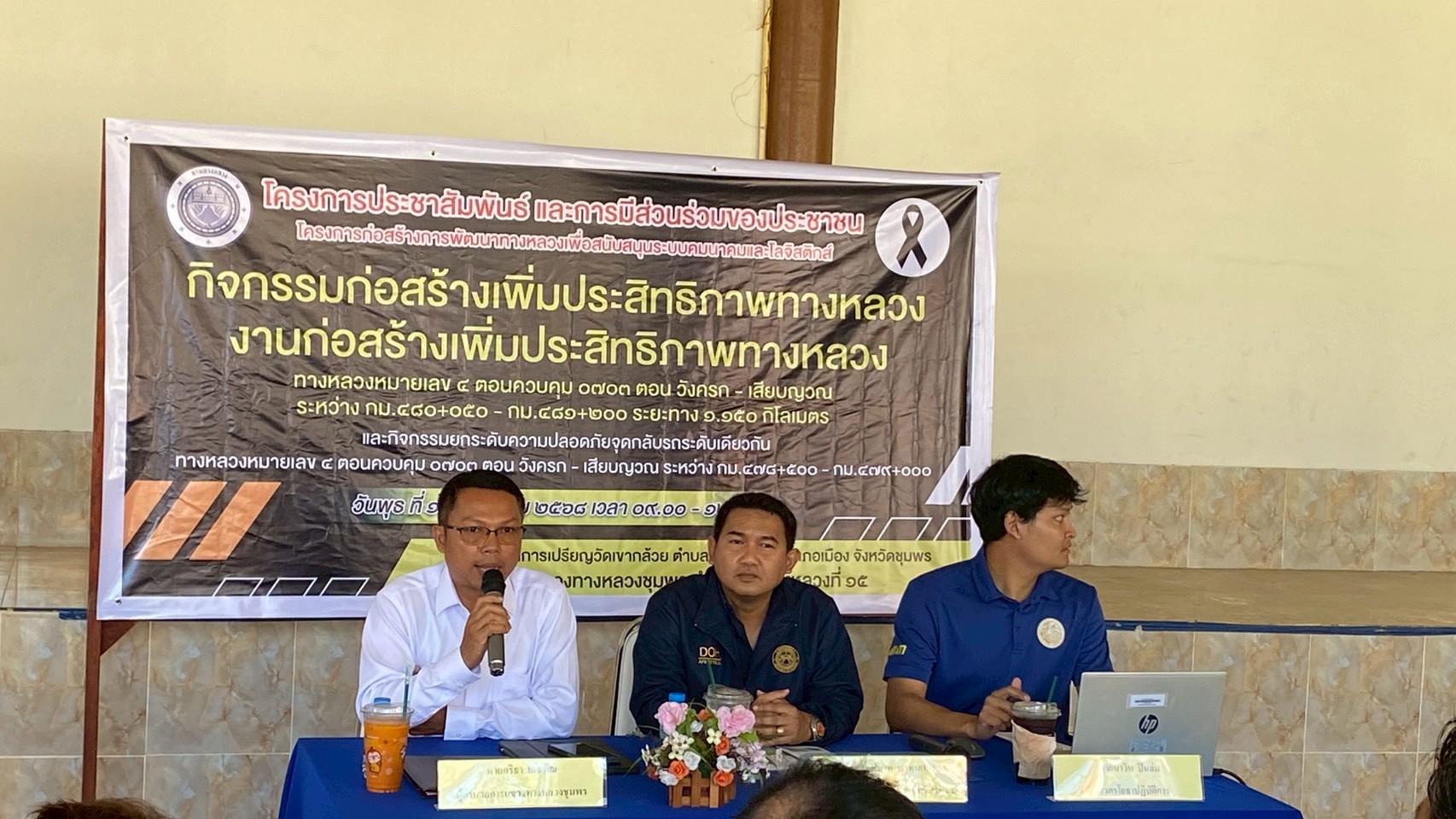 ระหว่าง กม.480+050 - กม.481+200 ในวันพุธ ที่ 17 ธันวาคม 2568 เวลา 09.00 – 12.00 น. ณ ศาลาการเปรียญ วัดเขากล้วย ตำบลหาดพันไกร อำเภอเมือง จังหวัดชุมพร