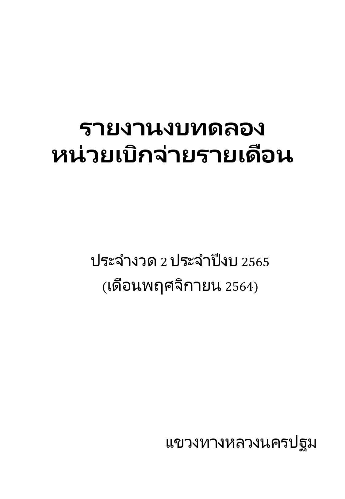 งบทดลอง ประจำเดือนพฤศจิกายน 2564 |