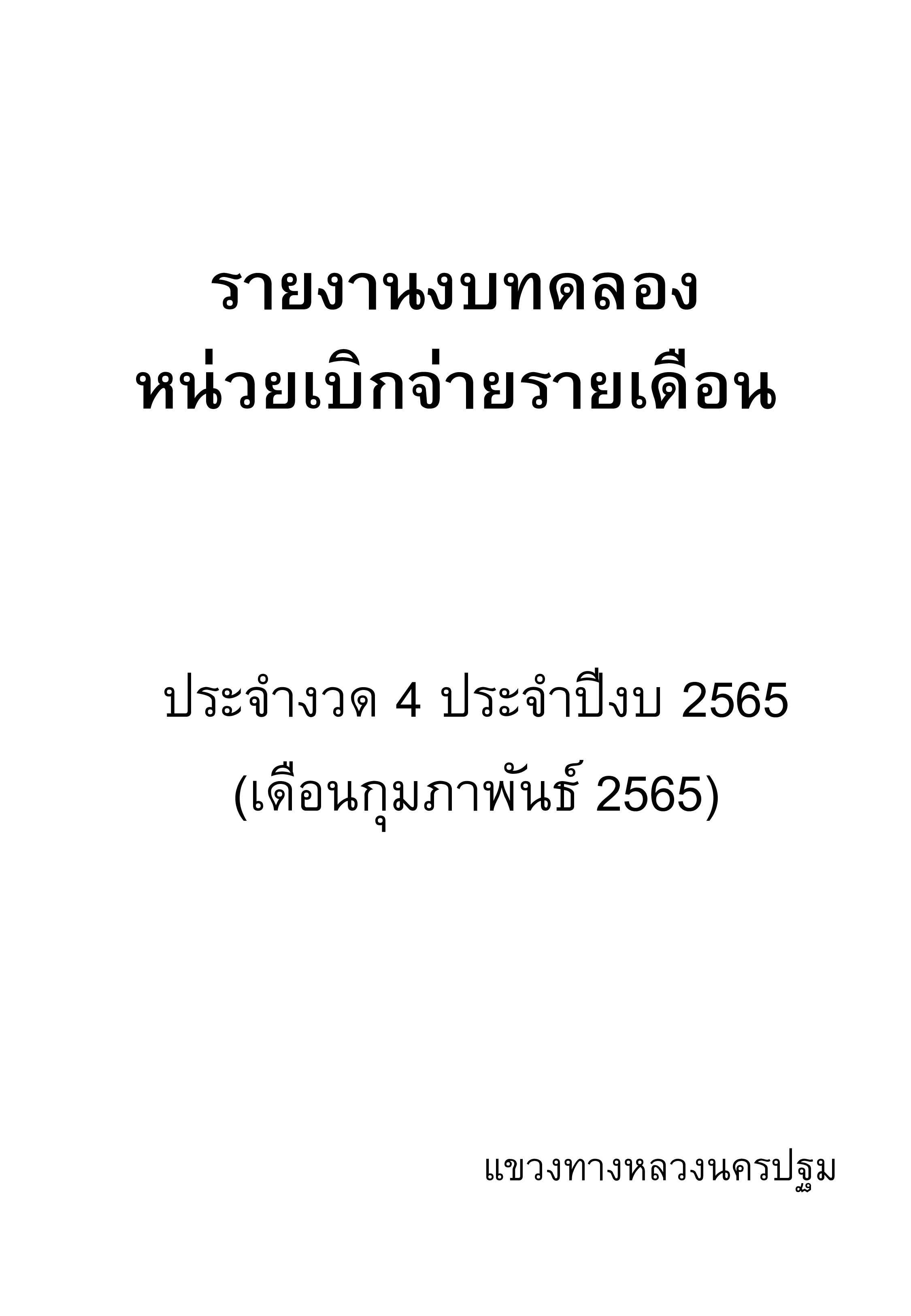 งบทดลอง ประจำเดือน กุมภาพันธ์ 2565 |