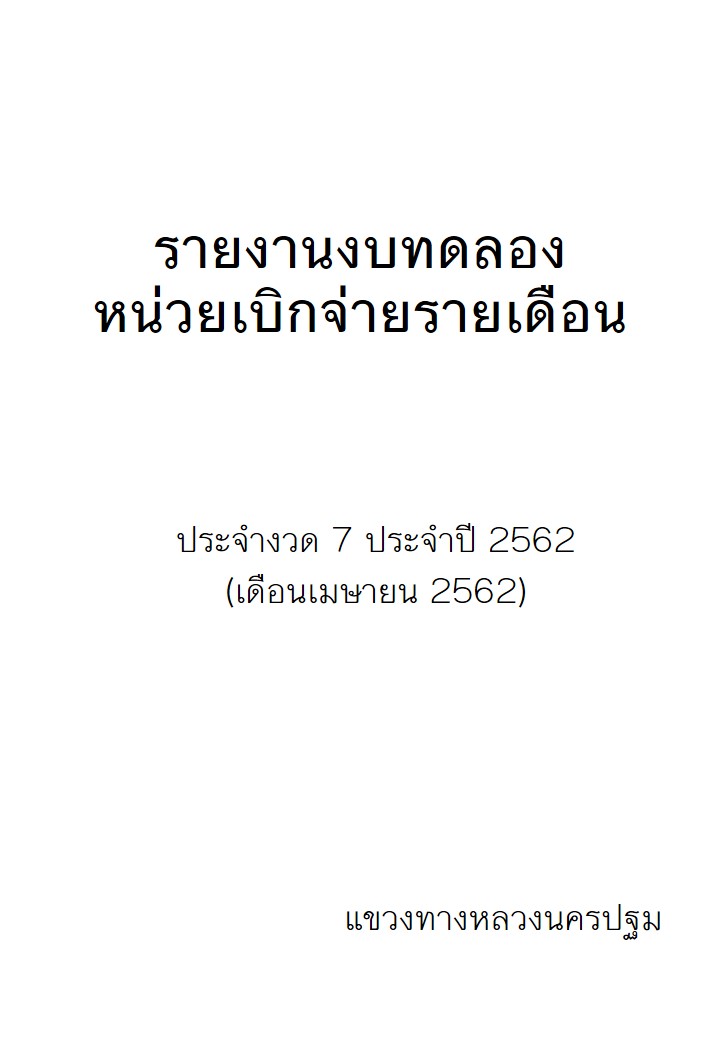งบทดลอง ประจำเดือนกรกฎาคม 2562 |