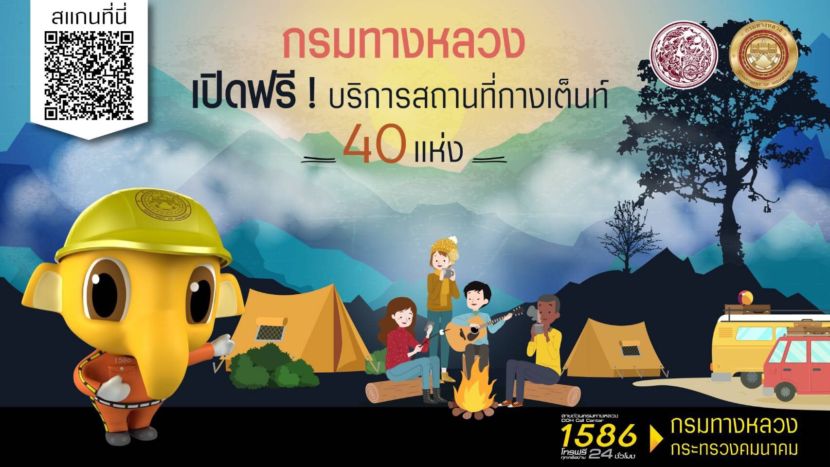 ฟรี 40 แห่ง! กรมทางหลวง แจ้งจุดบริการลานกางเต็นท์ทั่วประเทศ เพื่ออำนวยความสะดวกและรองรับการท่องเที่ยวของประชาชนในช่วงเทศกาลปีใหม่ 2563 สอบถามโทร 1586
