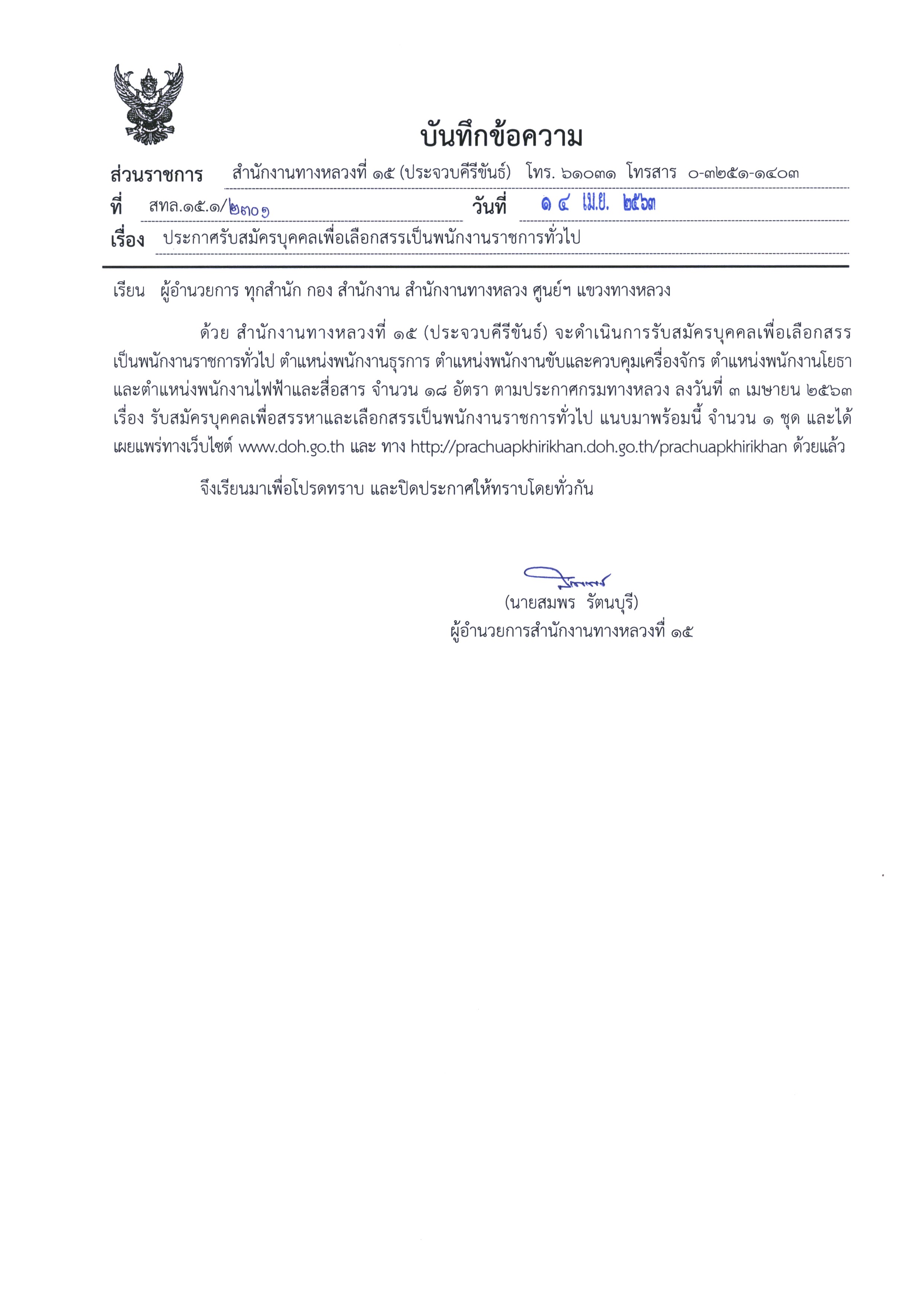 > สำนักงานทางหลวงที่ ๑๕