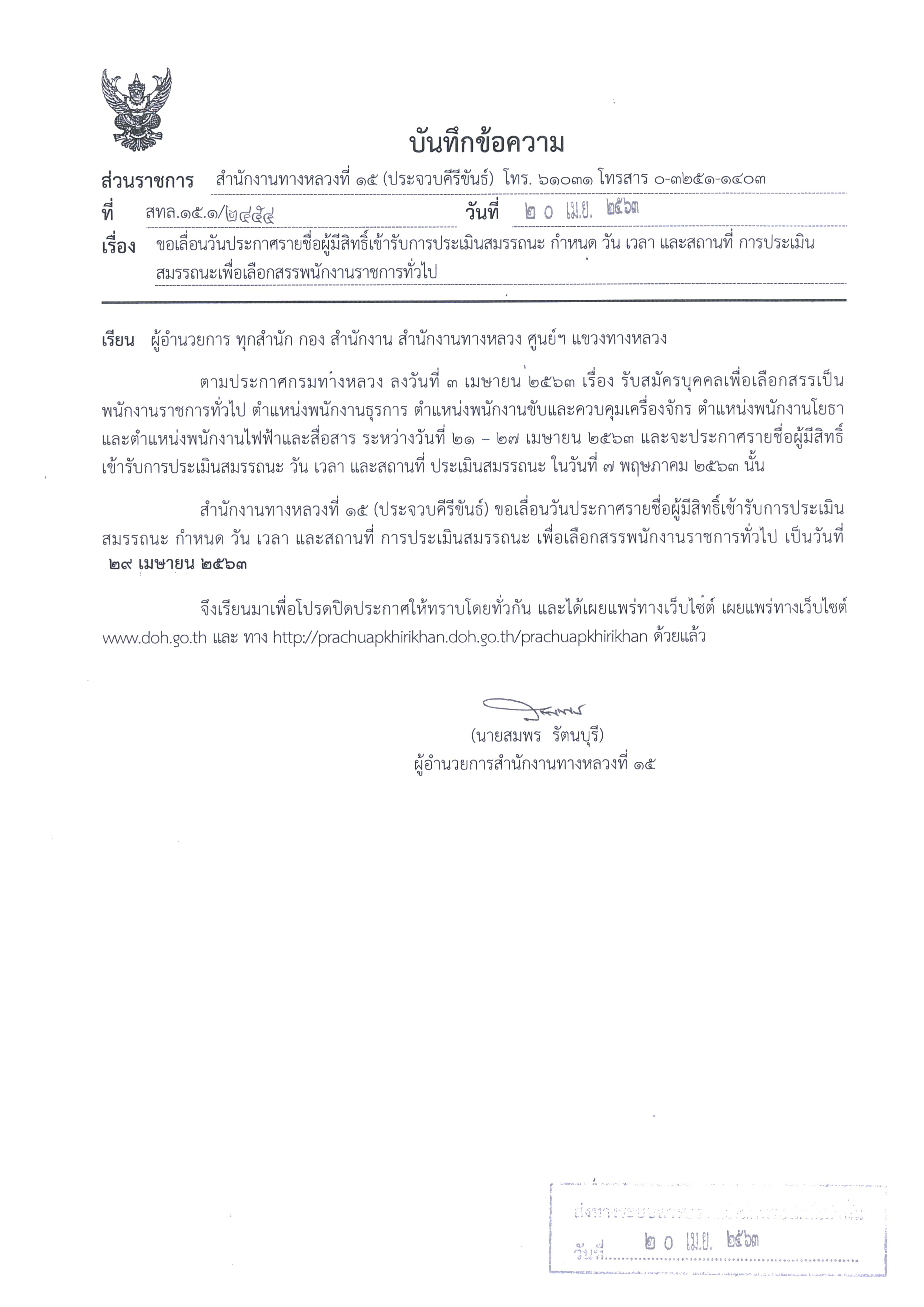 > ประกาศรายชื่อผู้มีสิทธิ์เข้ารับการประเมินสมรรถนะ