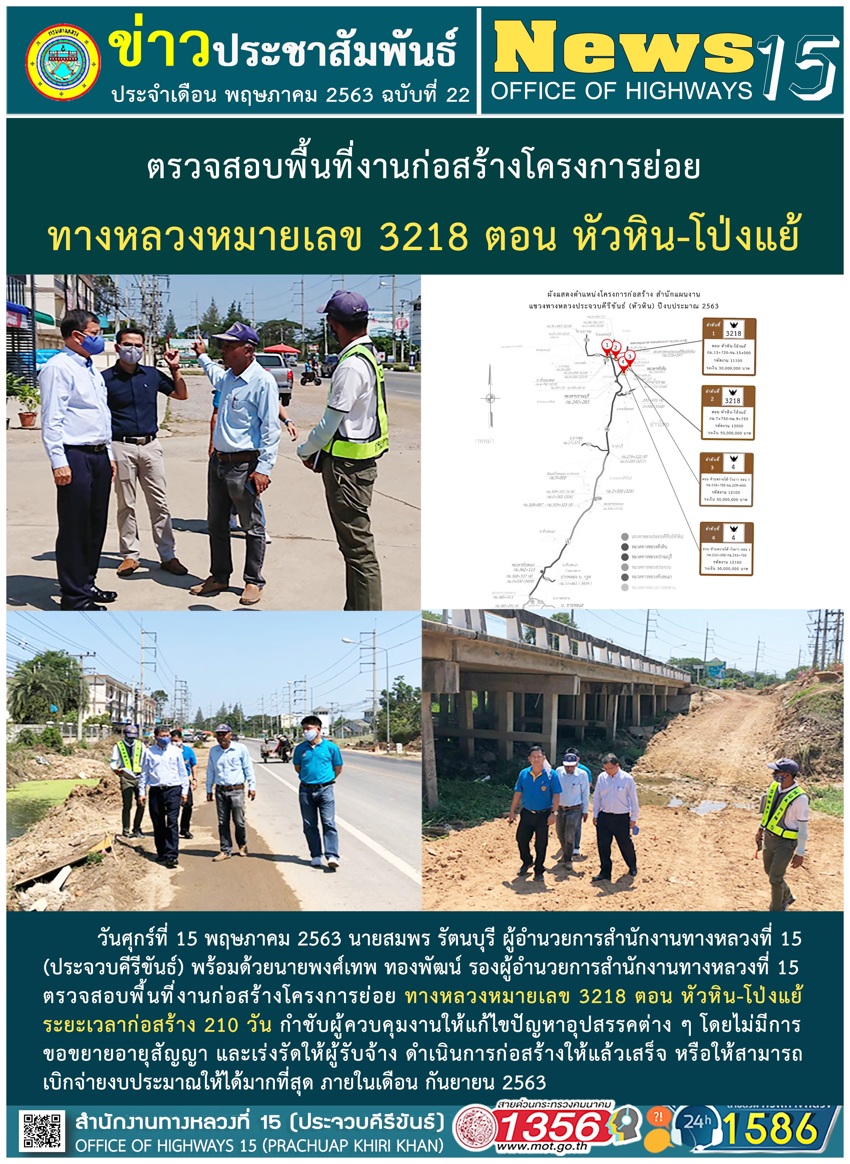ตรวจสอบพื้นที่งานก่อสร้างโครงการย่อย ทางหลวงหมายเลข 3218 ตอน หัวหิน-โป่งแย้