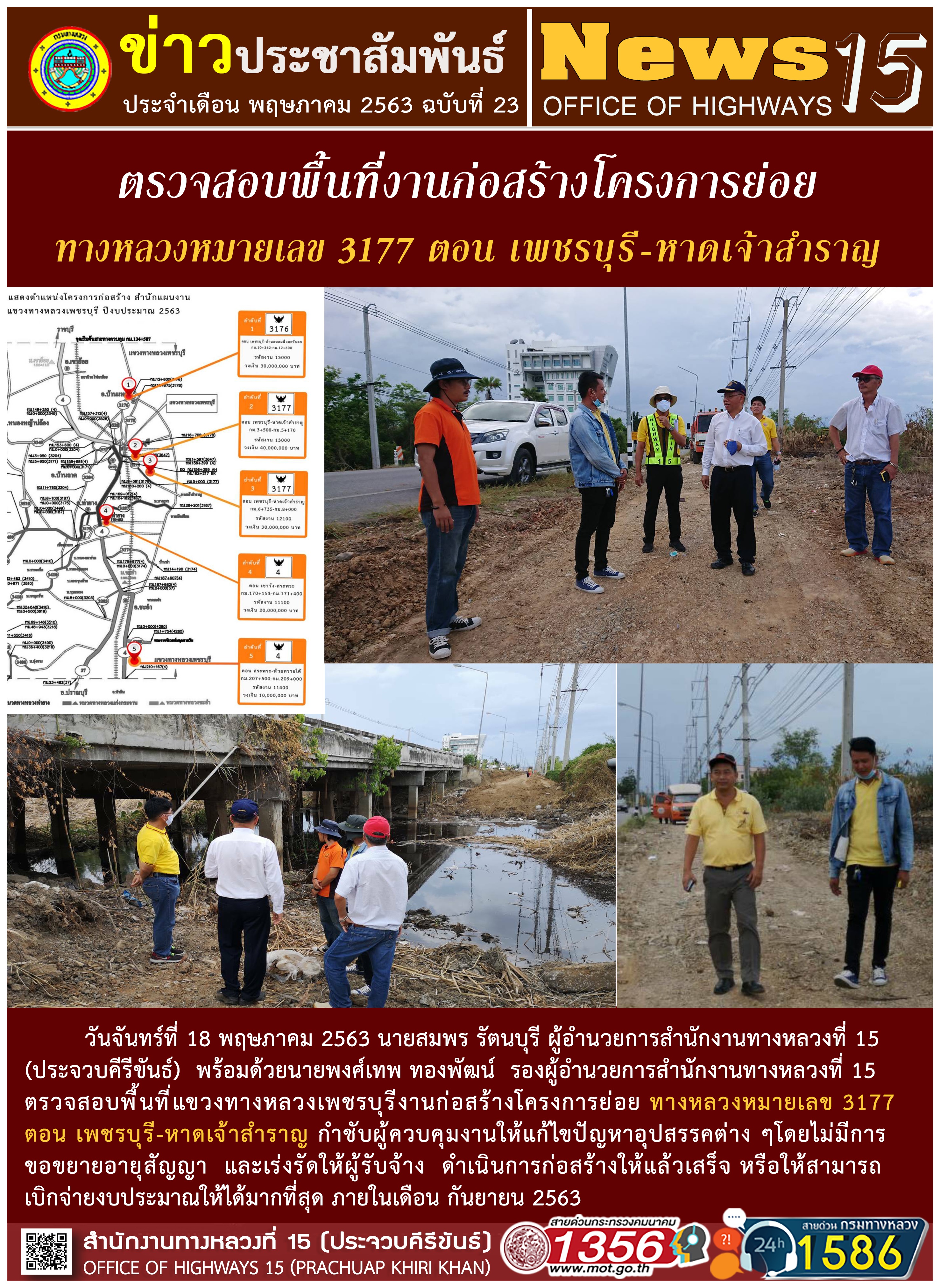 ตรวจสอบพื้นที่งานก่อสร้างโครงการย่อย ทางหลวงหมายเลข 3177 ตอน เพชรบุรี-หาดเจ้าสำราญ