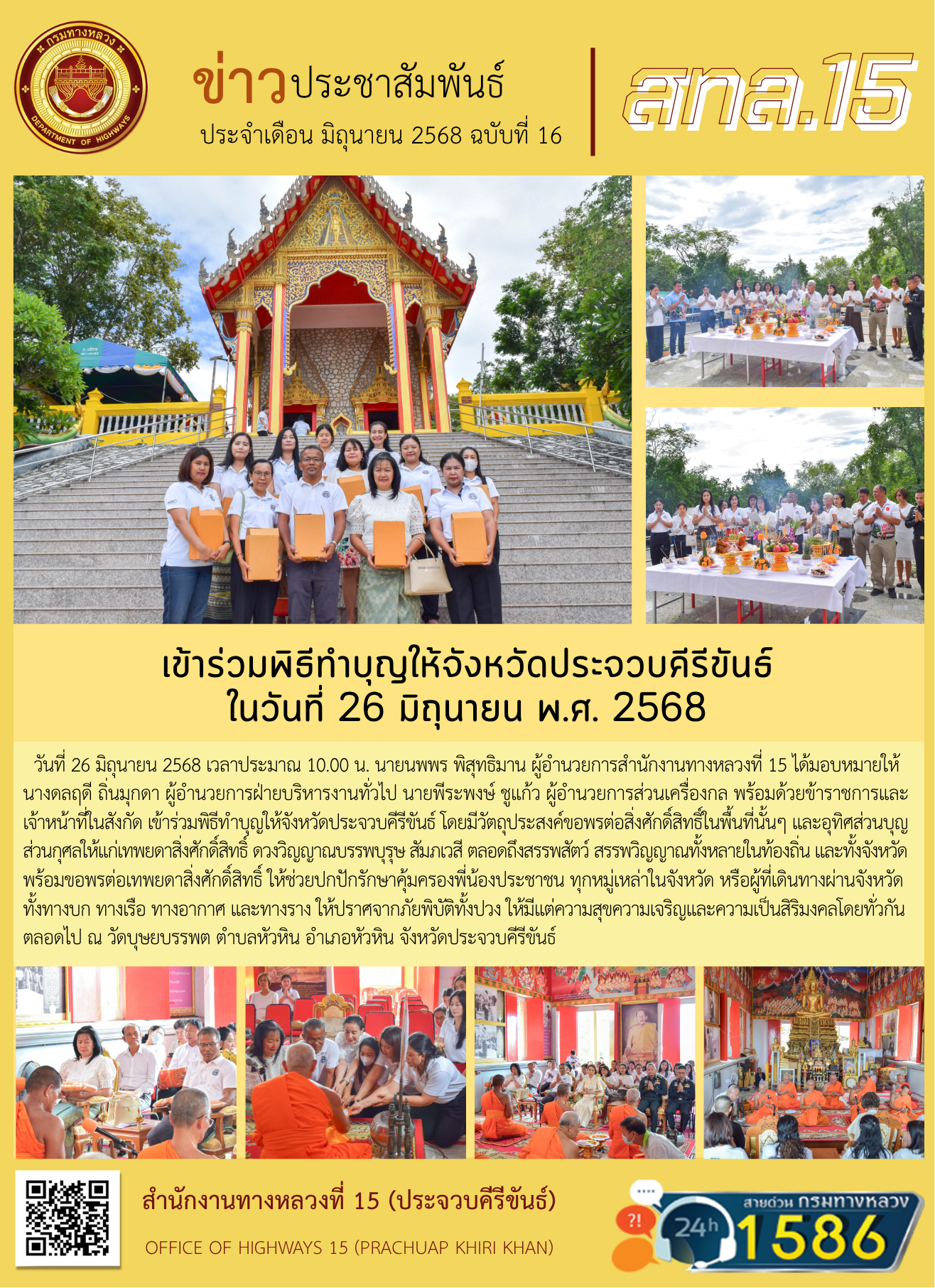 29 26/06/2568 เข้าร่วมพิธีทำบุญให้จังหวัดประจวบคีรีขันธ์ ในวันที่ 26 มิถุนายน พ.ศ. 2568