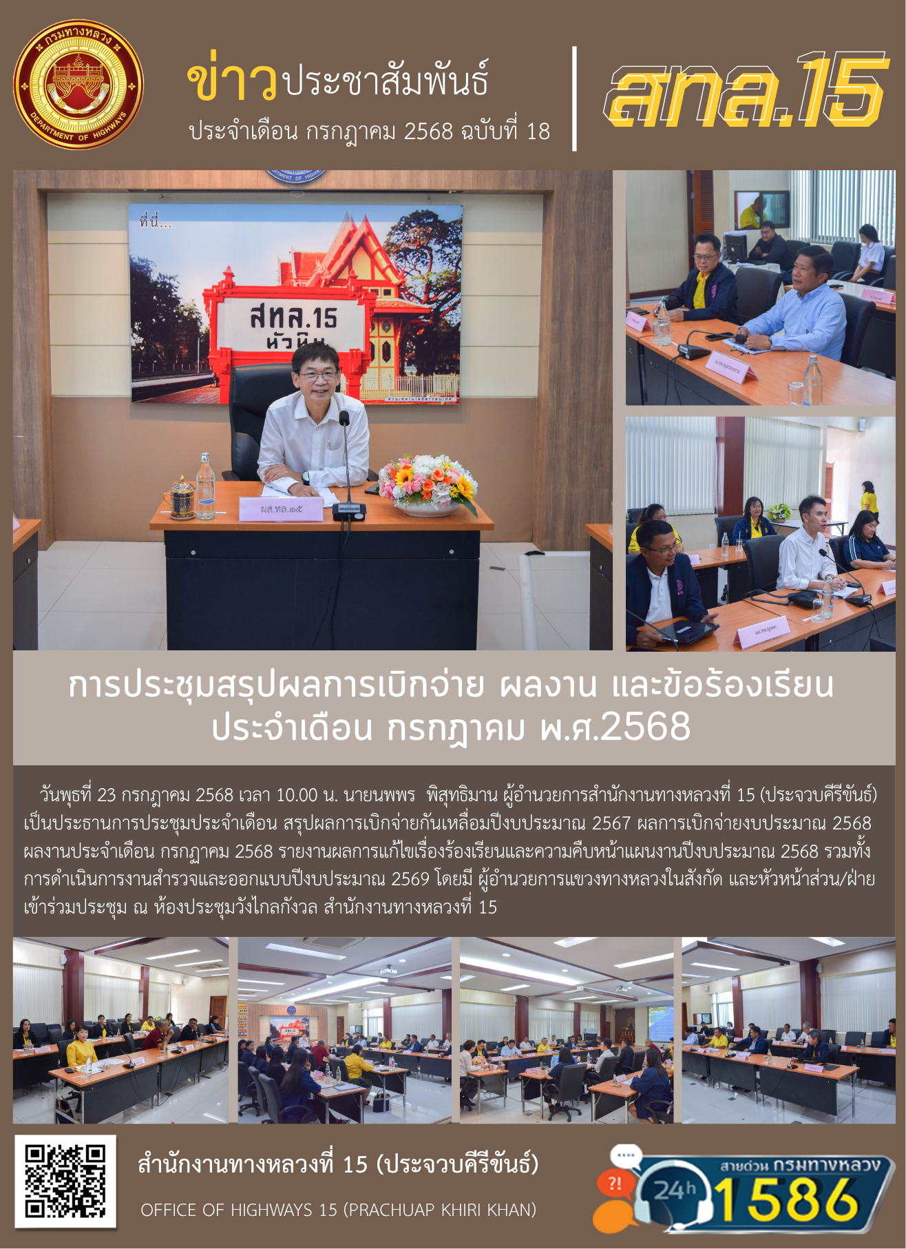 26 23/07/2568 การประชุมสรุปผลการเบิกจ่าย ผลงาน และข้อร้องเรียน ประจำเดือน กรกฎาคม พ.ศ.2568
