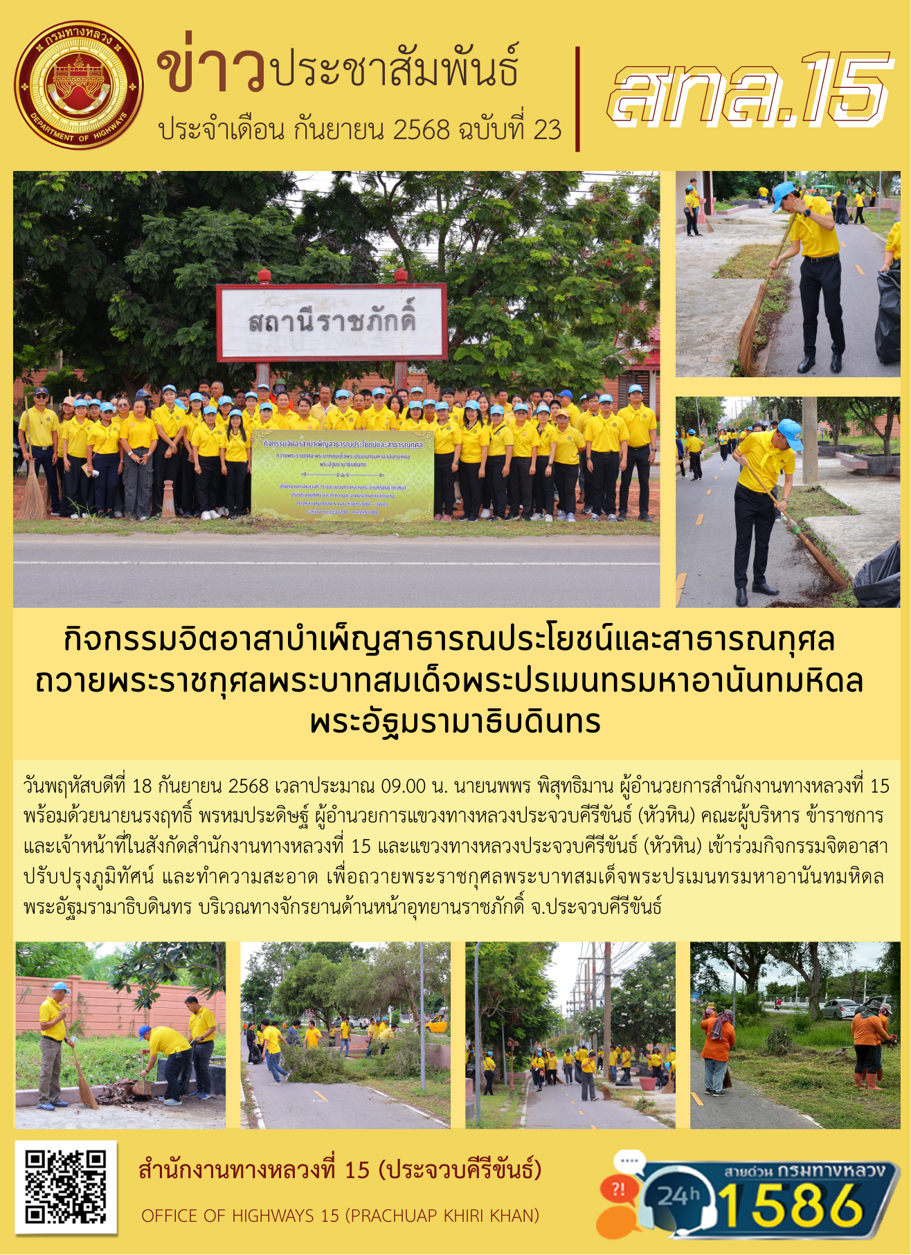 21 18/09/2568 กิจกรรมจิตอาสาบำเพ็ญสาธารณประโยชน์และสาธารณกุศล ถวายพระราชกุศลพระบาทสมเด็จพระปรเมนทรมหาอานันทมหิดล พระอัฐมรามาธิบดินทร