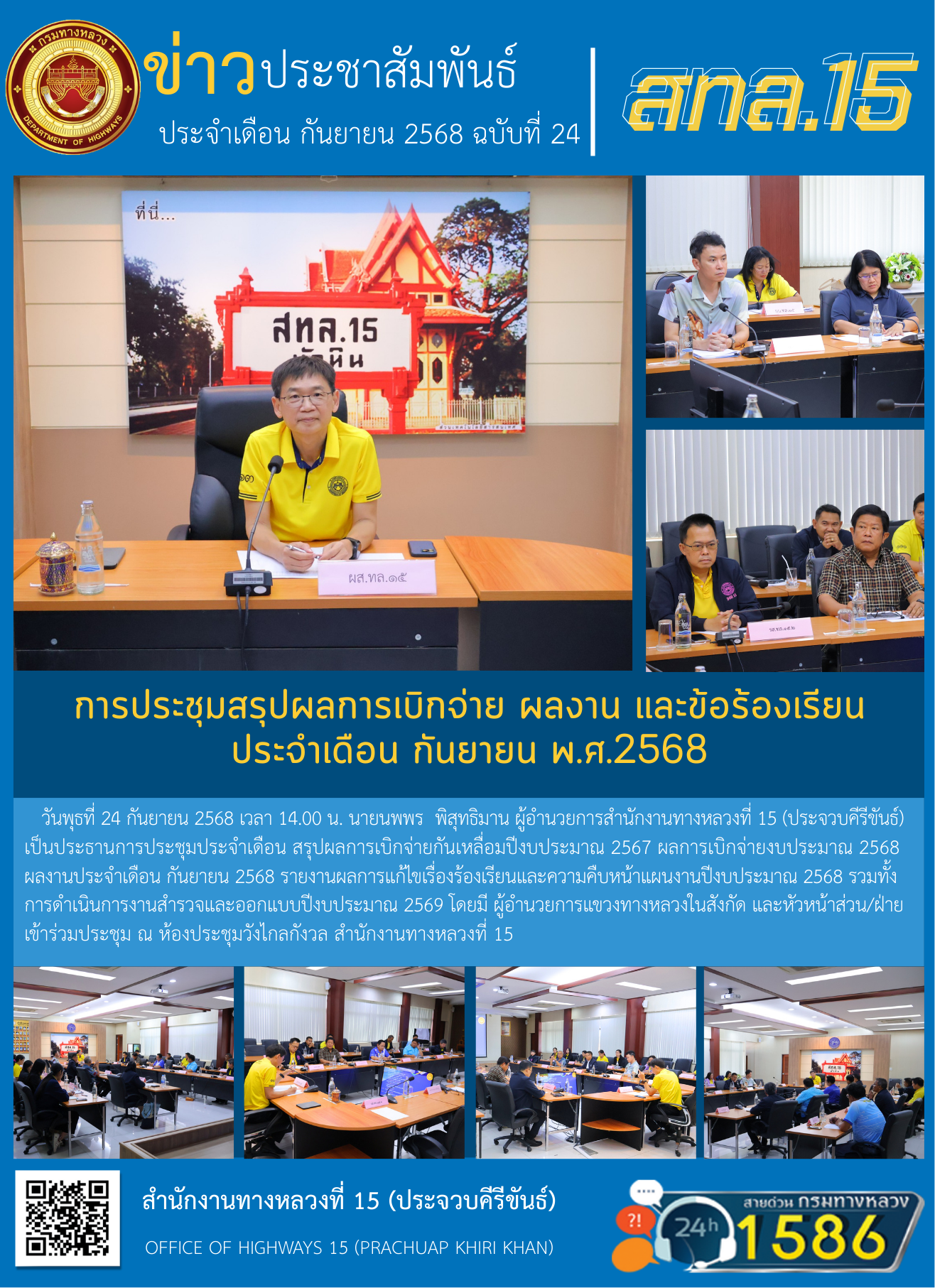 18 24/09/2568 การประชุมสรุปผลการเบิกจ่าย ผลงาน และข้อร้องเรียน ประจำเดือน กันยายน พ.ศ.2568
