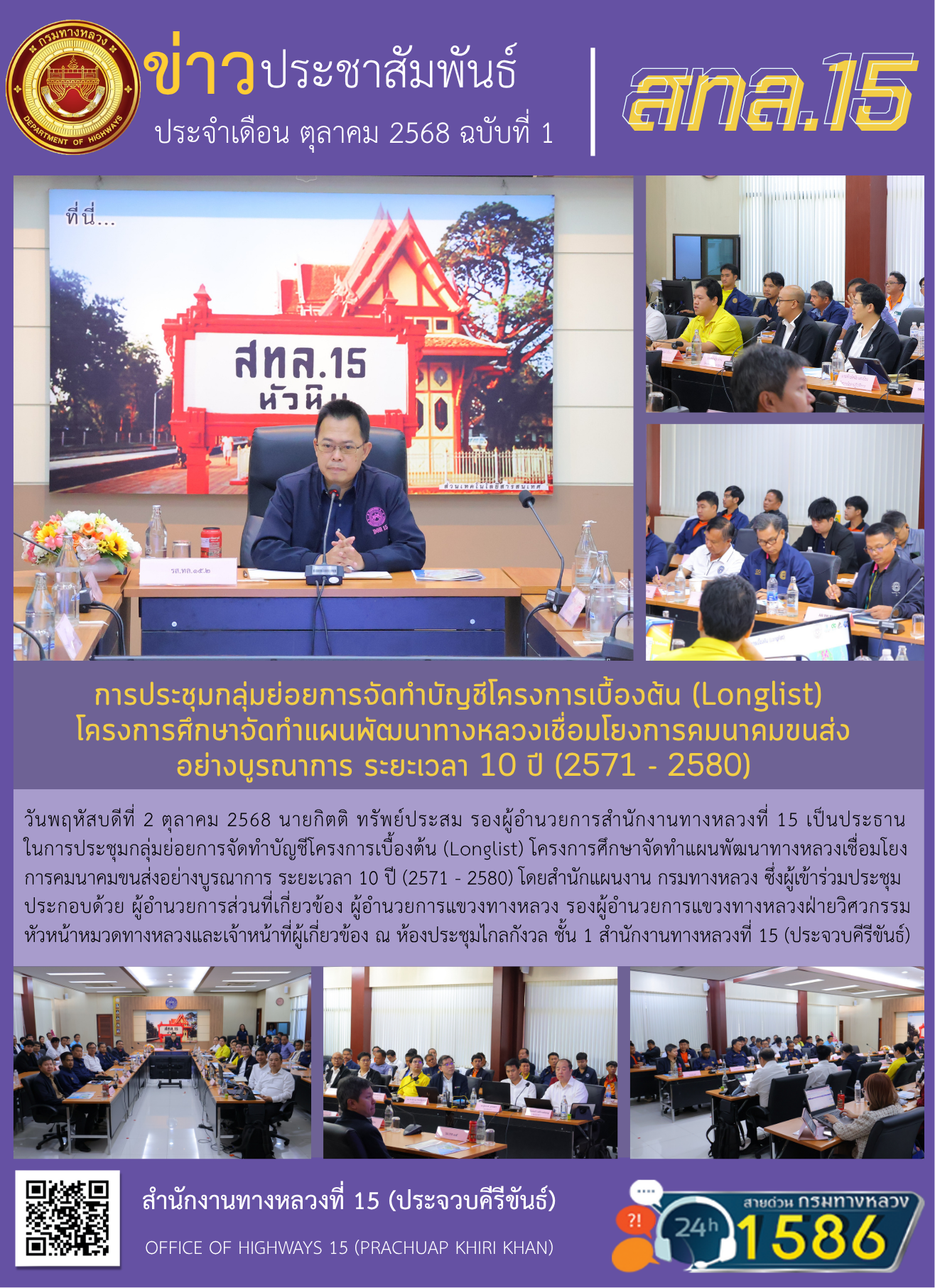 16 02/10/2568 การประชุมกลุ่มย่อยการจัดทำบัญชีโครงการเบื้องต้น (Longlist) โครงการศึกษาจัดทำแผนพัฒนาทางหลวงเชื่อมโยงการคมนาคมขนส่งอย่างบูรณาการ ระยะเวลา 10 ปี (2571 - 2580)