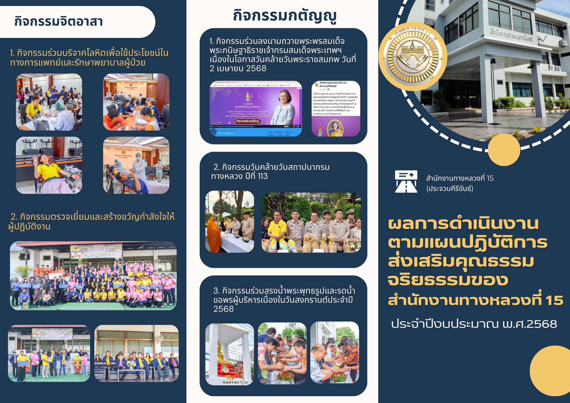 รายงานผลการดำเนินงานตามแผนปฏิบัติการส่งเสริมคุณธรรมจริยธรรมของสำนักงานทางหลวงที่ 15 ประจำปีงบประมาณ พ.ศ.2568