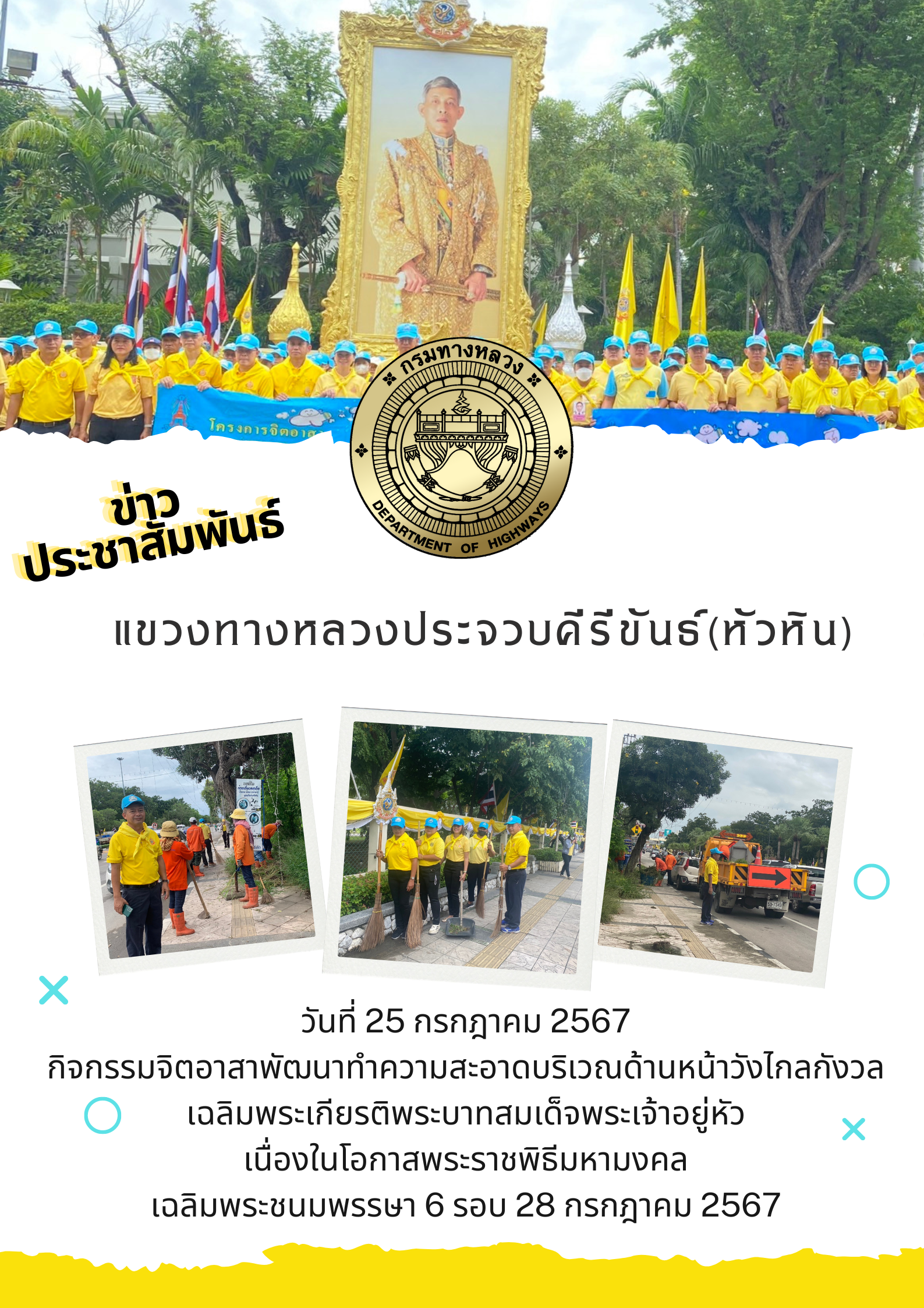 กิจกรรม จิตอาสาพัฒนาทำความสะอาดบริเวณหน้าวังไกลกังวล เฉลิมพระเกียรติพระบาทสมเด็จพระเจ้าอยู่หัว เนื่องในโอกาสพระราชพิธีมหามงคลเฉลิมพระชนมพรรษา 6 รอบ 28 กรกฎาคม 2567
