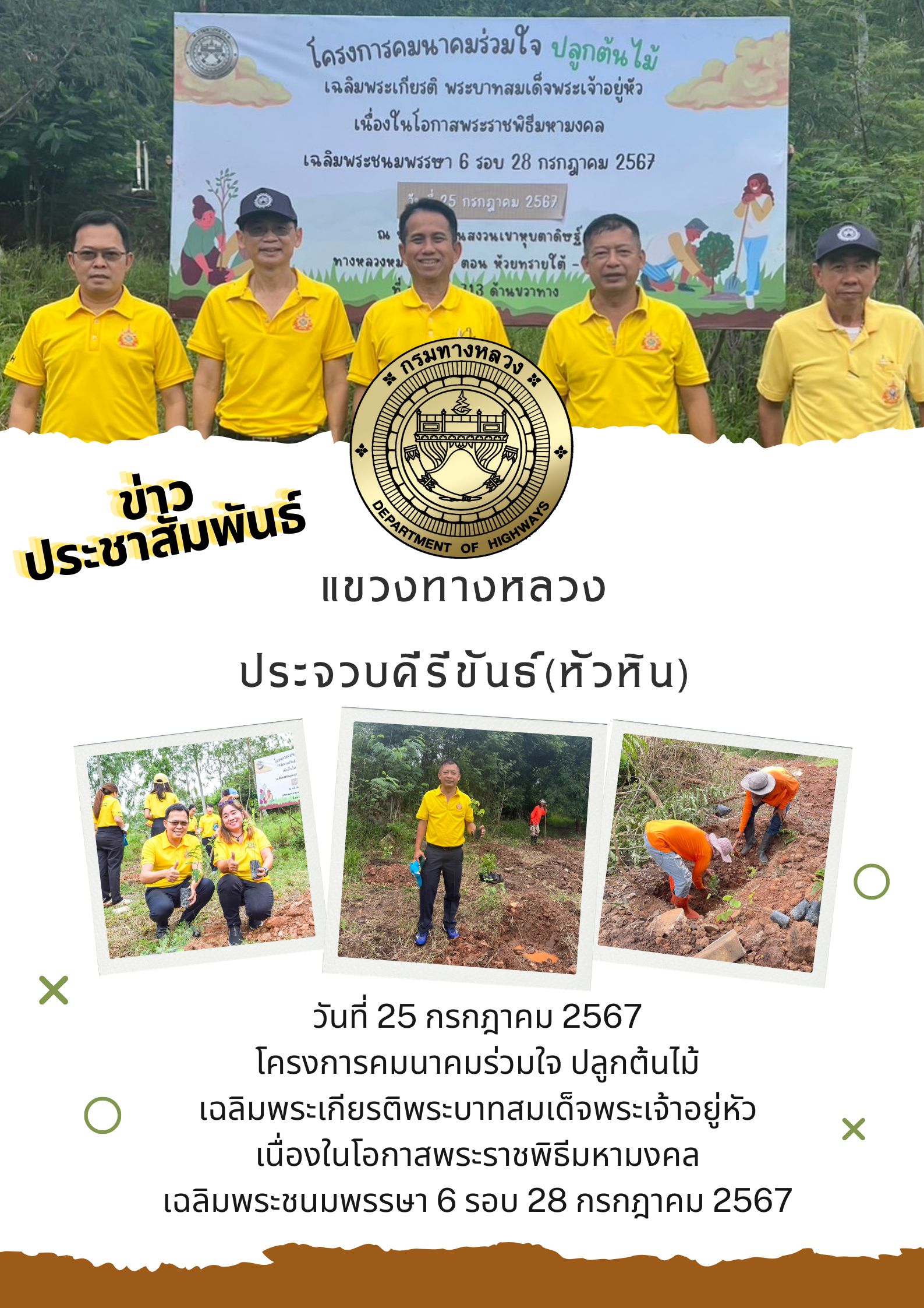 กิจกรรม โครงการคมนาคมร่วมใจปลูกต้นไม้ เฉลิมพระเกียรติพระบาทสมเด็จพระเจ้าอยู่หัวเนื่องในโอกาสพระราชพิธีมหามงคลเฉลิมพระชนมพรรษา 6 รอบ 28 กรกฎาคม 2567