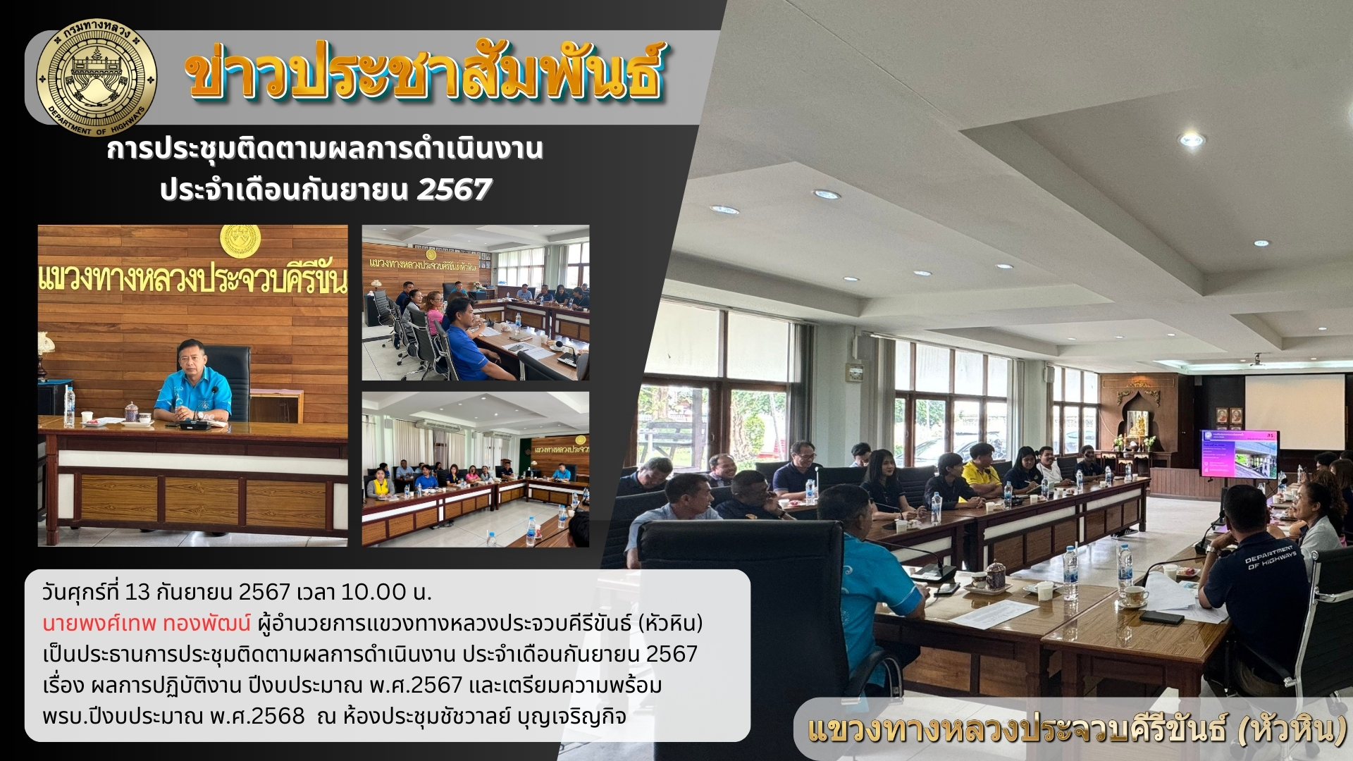 การประชุมติดตามผลการดำเนินงานของแขวงทางหลวงประจวบคีรีขันธ์(หัวหิน) ประจำเดือนกันยายน 2567