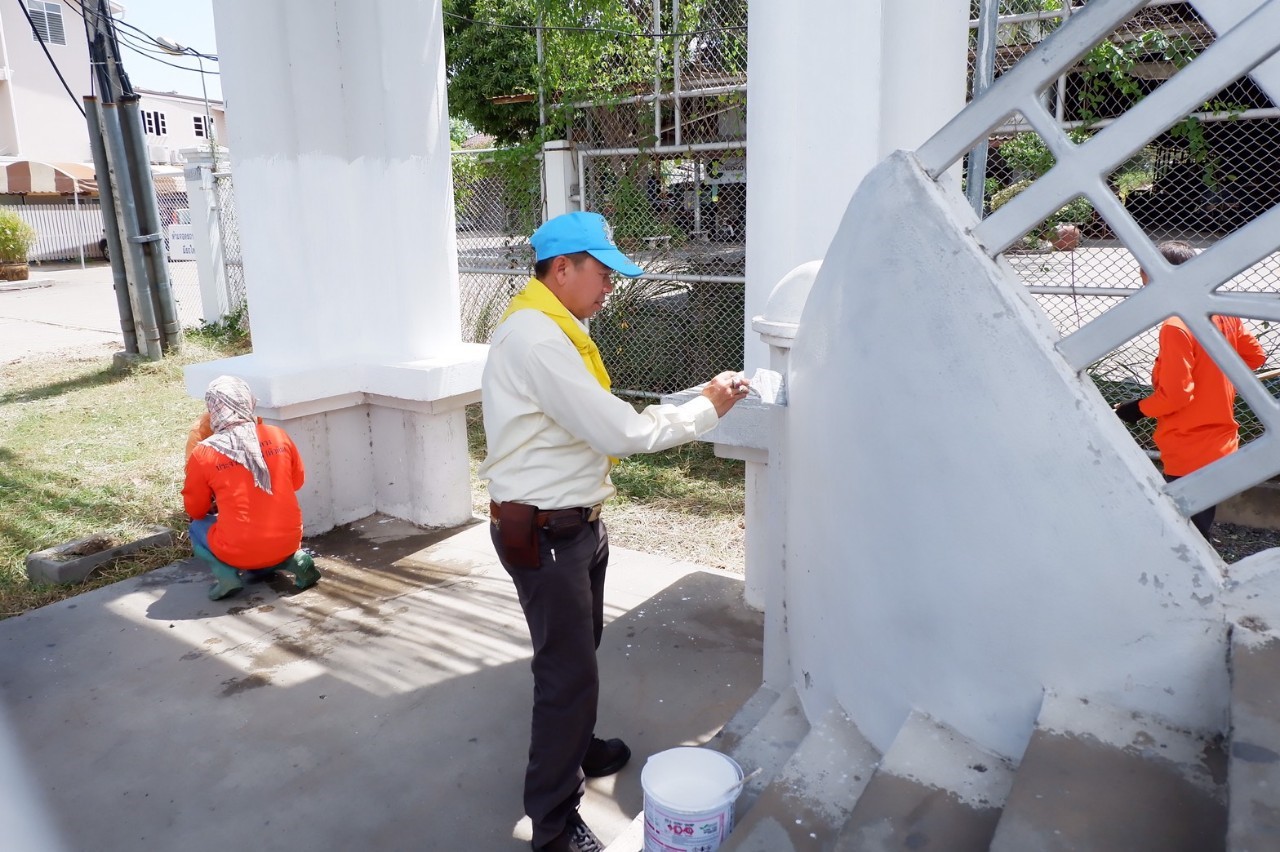 นายอภิชาติ ชาญธัญกร ผู้อำนวยการแขวงทางหลวงประจวบคีรีขันธ์(หัวหิน) พร้อมเจ้าหน้าที่ในสังกัด ร่วมกิจกรรม “พัฒนาทำความสะอาด ตัดแต่งกิ่งไม้ ผูกผ้า ติดตั้งไฟฟ้าแสงสว่างและปรับปรุงภูมิทัศน์” ตามโครงการจิตอาสา “เราทำความดี ด้วยหัวใจ” บริเวณด้านหน้าวังไกลกังวล (แนวถนนเพชรเกษม) อำเภอหัวหิน จังหวัดประจวบคีรีขันธ์ เนื่องในโอกาสมหามงคลพระราชพิธีบรมราชาภิเษก