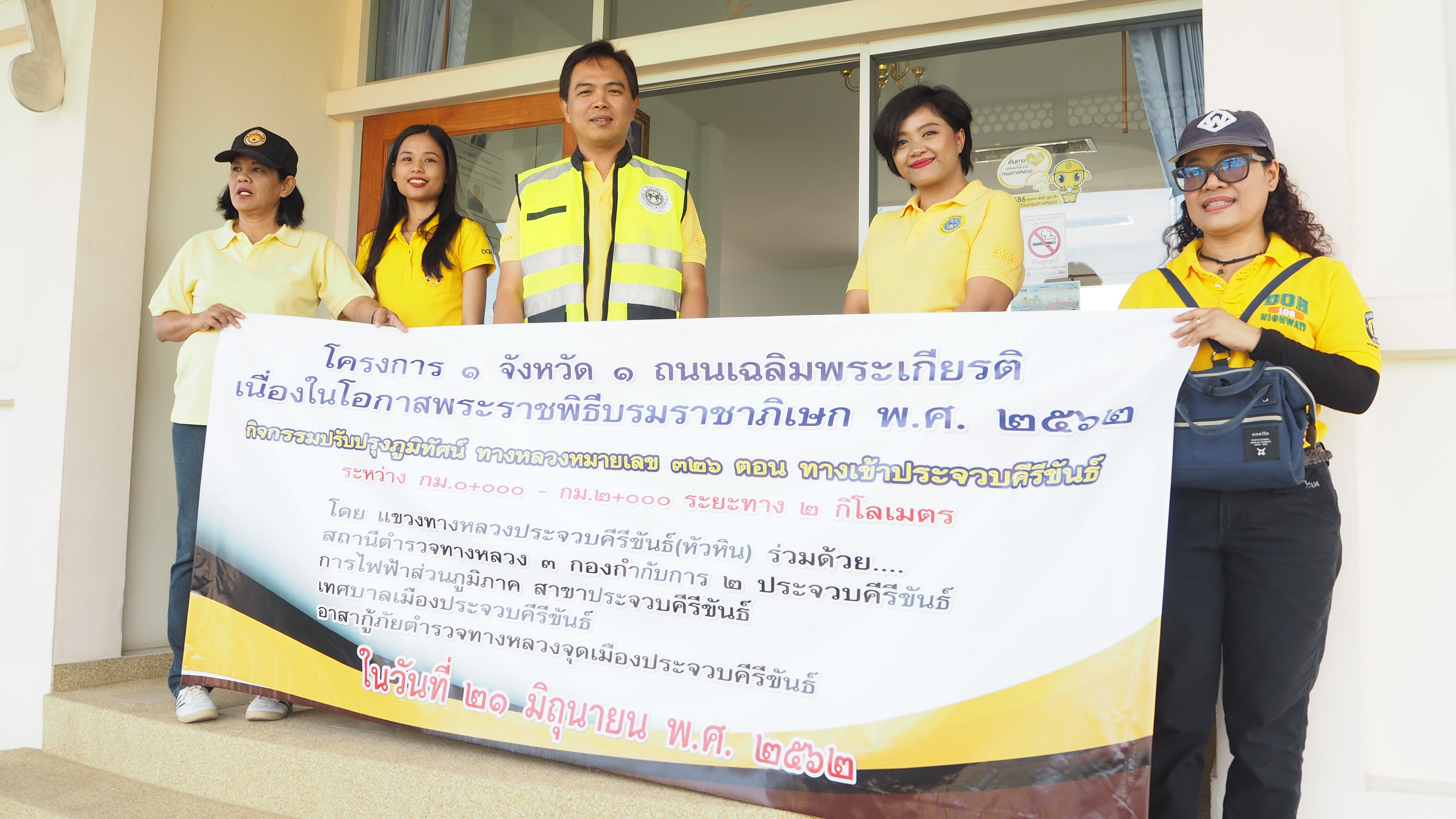 แขวงทางหลวงประจวบคีรีขันธ์(หัวหิน) นำโดย นายอภิชาติ ชาญธัญกร ผู้อำนวยการแขวงทางหลวงประจวบคีรีขันธ์(หัวหิน) พร้อมเจ้าหน้าที่ในสังกัด ร่วมกับ เจ้าหน้าที่สถานีตำรวจทางหลวง 3 กองกำกับการ 2 ประจวบคีรีขันธ์, การไฟฟ้าส่วนภูมิภาค สาขาประจวบคีรีขันธ์, เทศบาลเมืองประจวบคีรีขันธ์, และอาสากู้ภัยตำรวจทางหลวงจุดเมืองประจวบคีรีขันธ์ ดำเนินการปรับปรุงภูมิทัศน์ บนทางหลวงหมายเลข 326 ตอน ทางเข้าประจวบคีรีขันธ์ ระหว่าง กม.0+000 - กม.2+000 รวมระยะทาง 2 กิโลเมตร ตามโครงการ 1 จังหวัด 1 ถนนเฉลิมพระเกียรติ เนื่องในโอกาสพระราชพิธีบรมราชาภิเษก พ.ศ.2562 เพื่อทำให้เกิดทัศนวิสัยที่สวยงามและอำนวยความสะดวกปลอดภัยแก่ผู้ใช้ทาง