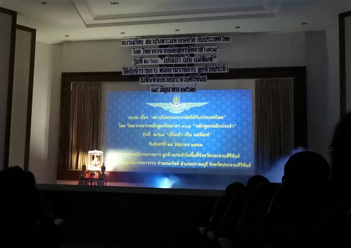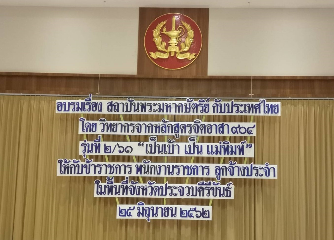 แขวงทางหลวงประจวบคีรีขันธ์(หัวหิน) จัดส่งเจ้าหน้าที่เข้าร่วมอบรมขยายผลโครงการจิตอาสาพระราชทานตามแนวพระราชดำริ "หลักสูตรหลักประจำ" รุ่นที่ 2/61 "เป็นเบ้า เป็นแม่พิมพ์" และรับฟังการบรรยายในหัวข้อ สถาบันพระมหากษัตริย์กับประเทศไทย และชี้แจงแผนปฏิบัติหน้าที่ของจิตอาสา ณ หอประชุมศูนย์การทหารราบ(ค่ายธนะรัชต์) อำเภอปราณบุรี จังหวัดประจวบคีรีขันธ์